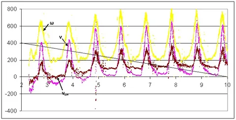 В-вторых, на графике нет кривой ускорения и пройденного пути. Либо в данных опытах ускорение и пройденный путь не измерялись, либо по какой-то причине было принято решение ускорение и пройденный путь не фиксировать (не отображать).